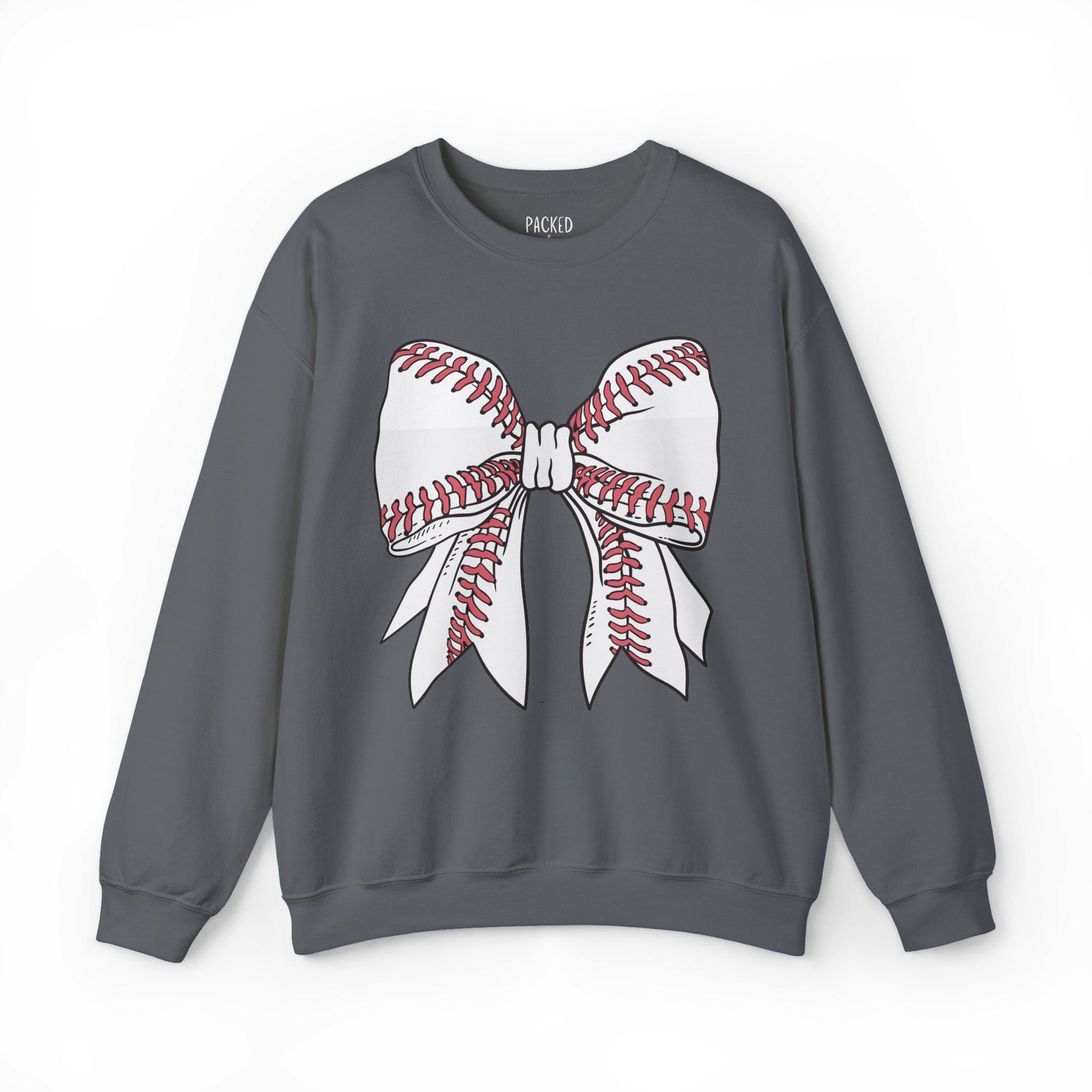Sporty meets sweet with this cozy crewneck featuring a bold baseball-stitched bow. Perfect for proud baseball moms who love showing team spirit with a touch of style. Cute, comfy, and game-day ready!