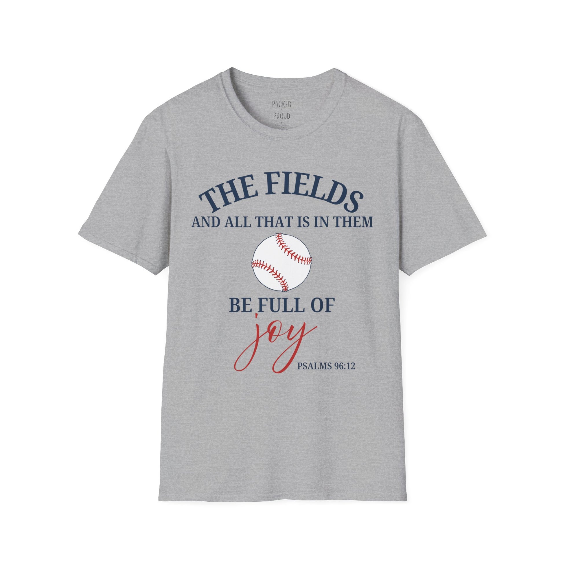 This tee blends faith and baseball in the sweetest way. Featuring a scripture-inspired design from Psalms 96:12, it’s a joyful reminder that the ballfield is a place of purpose and praise. Perfect for game days, tournaments, or just repping your baseball mom heart with meaning.