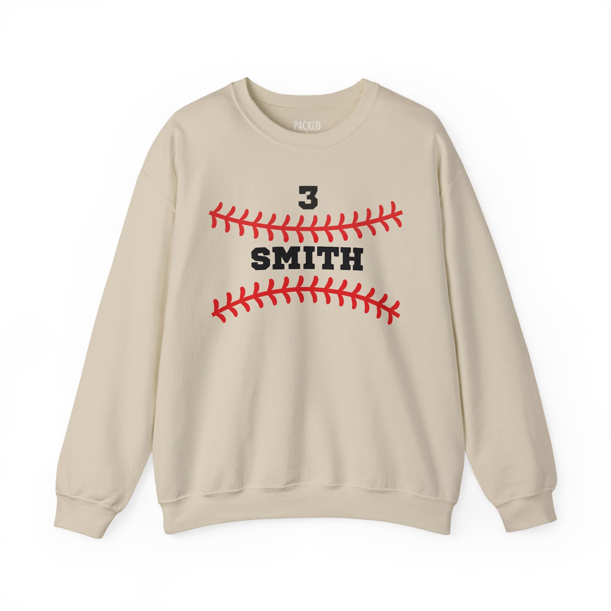 Rep your favorite player with this personalized crewneck sweatshirt! Showcasing your ballplayer’s name and number, it’s the perfect blend of comfort and team spirit. Font colors can be black or white—see the stock photo examples for recommended options that stand out best.