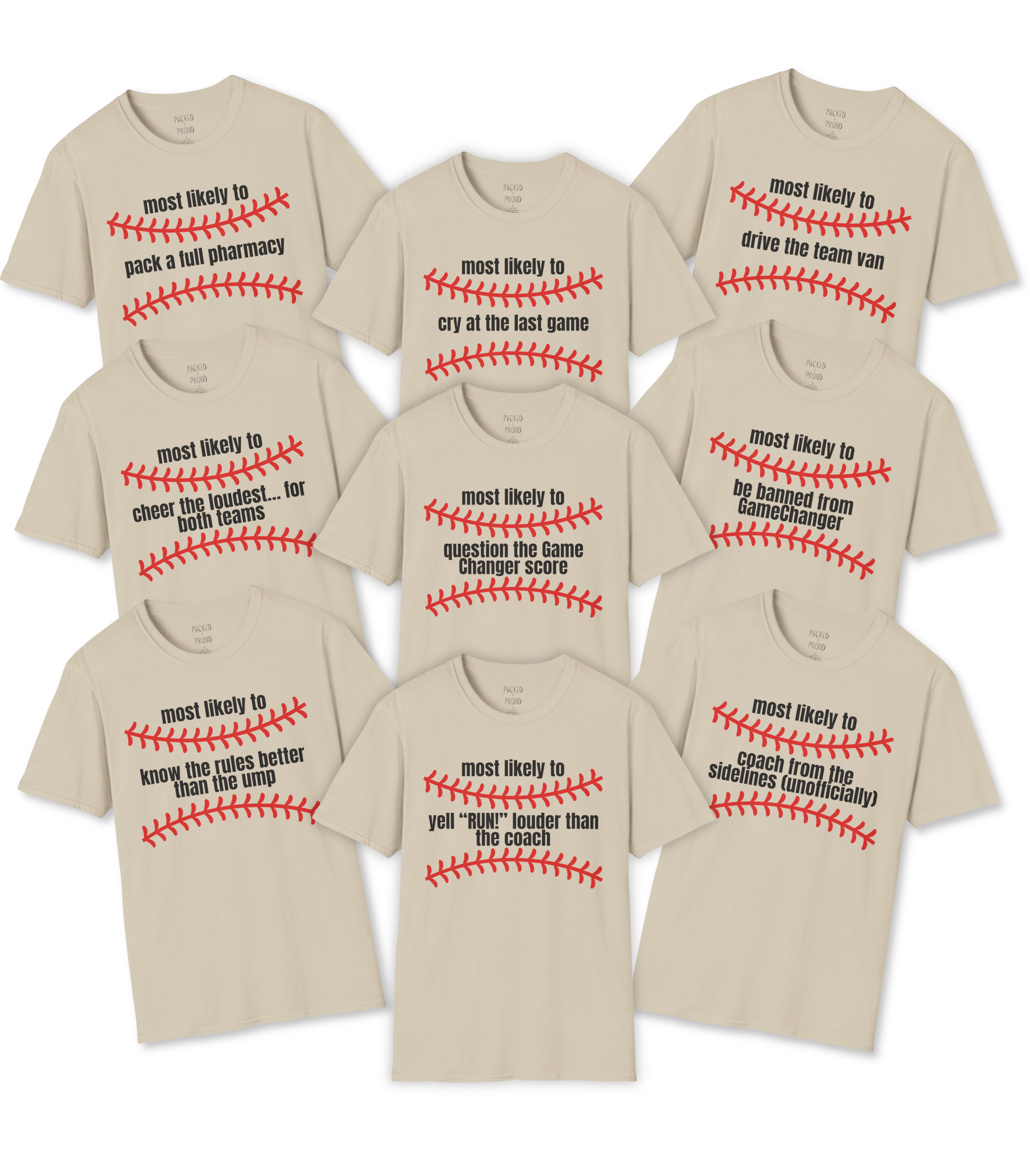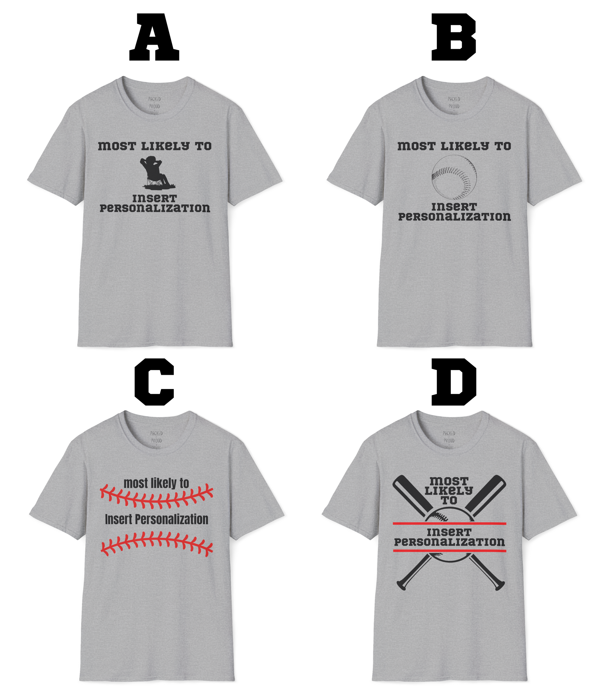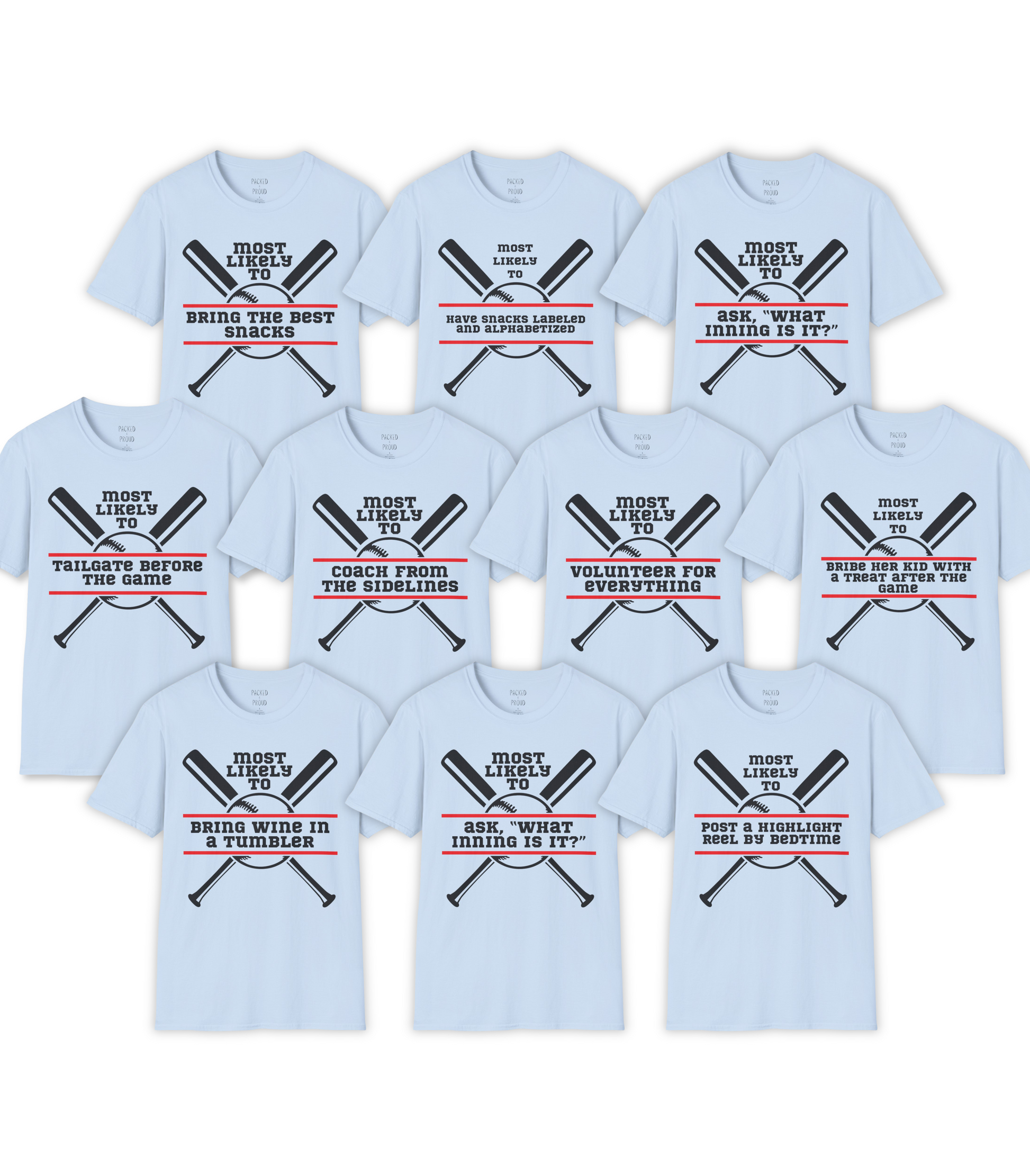 This customizable tee is perfect for team moms who bring personality to the sidelines! Featuring a bold “Most Likely To” design with a baseball graphic, you can add your own funny title to match each mom’s vibe. Made for laughs, comfort, and standing out on game day.