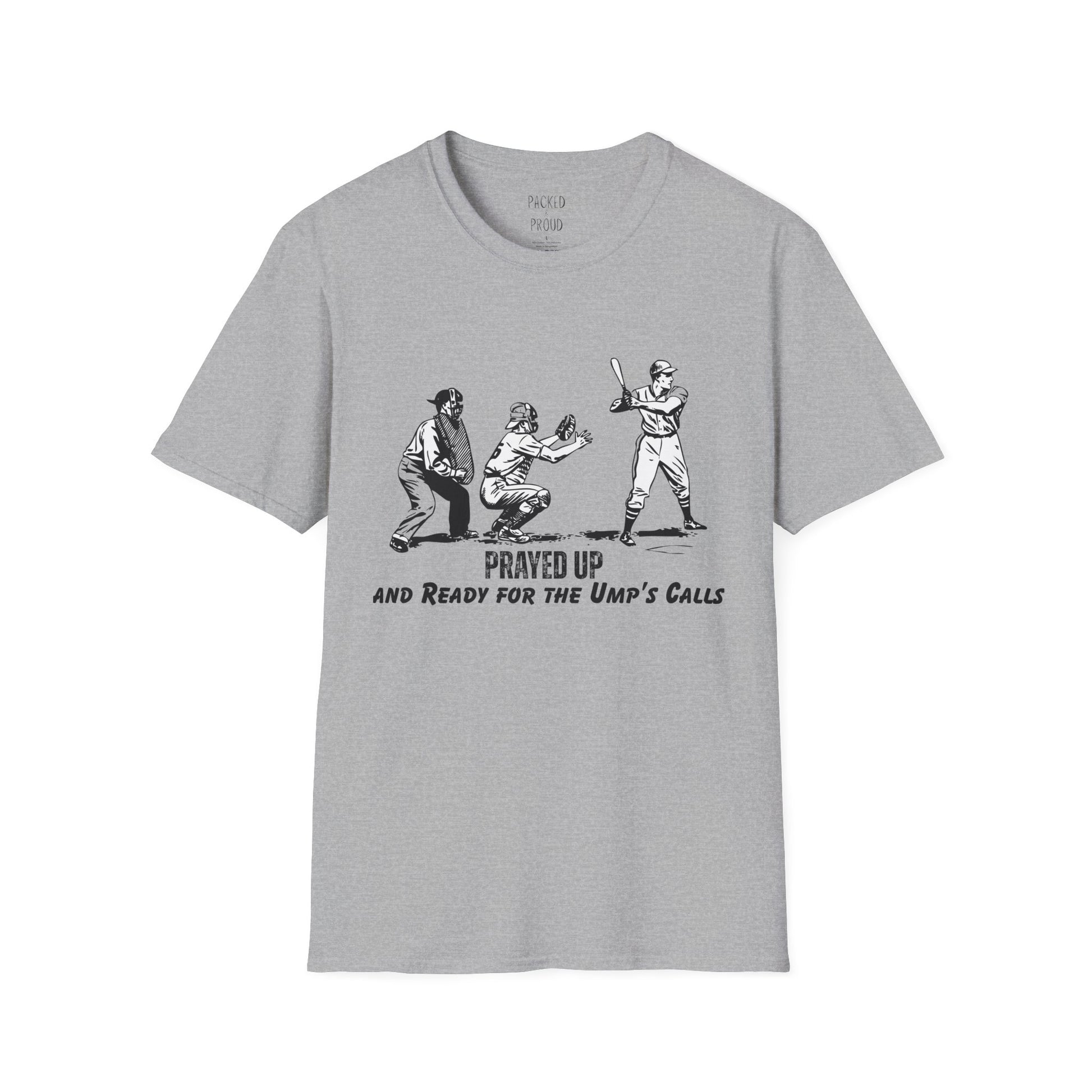 Bring a little faith and a lot of fun to the ballpark with our Prayed Up – and Ready for the Ump’s Calls t-shirt. Perfect for the baseball mom who’s got one eye on the game and the other on the Good Book, this shirt says you’re covered in prayer no matter what the strike zone looks like today. Whether the calls go your way or leave you shaking your head, you’ll be ready to cheer, groan, and laugh it off in comfort and style. Ideal for game days when you need equal parts patience, humor, and divine intervention.
