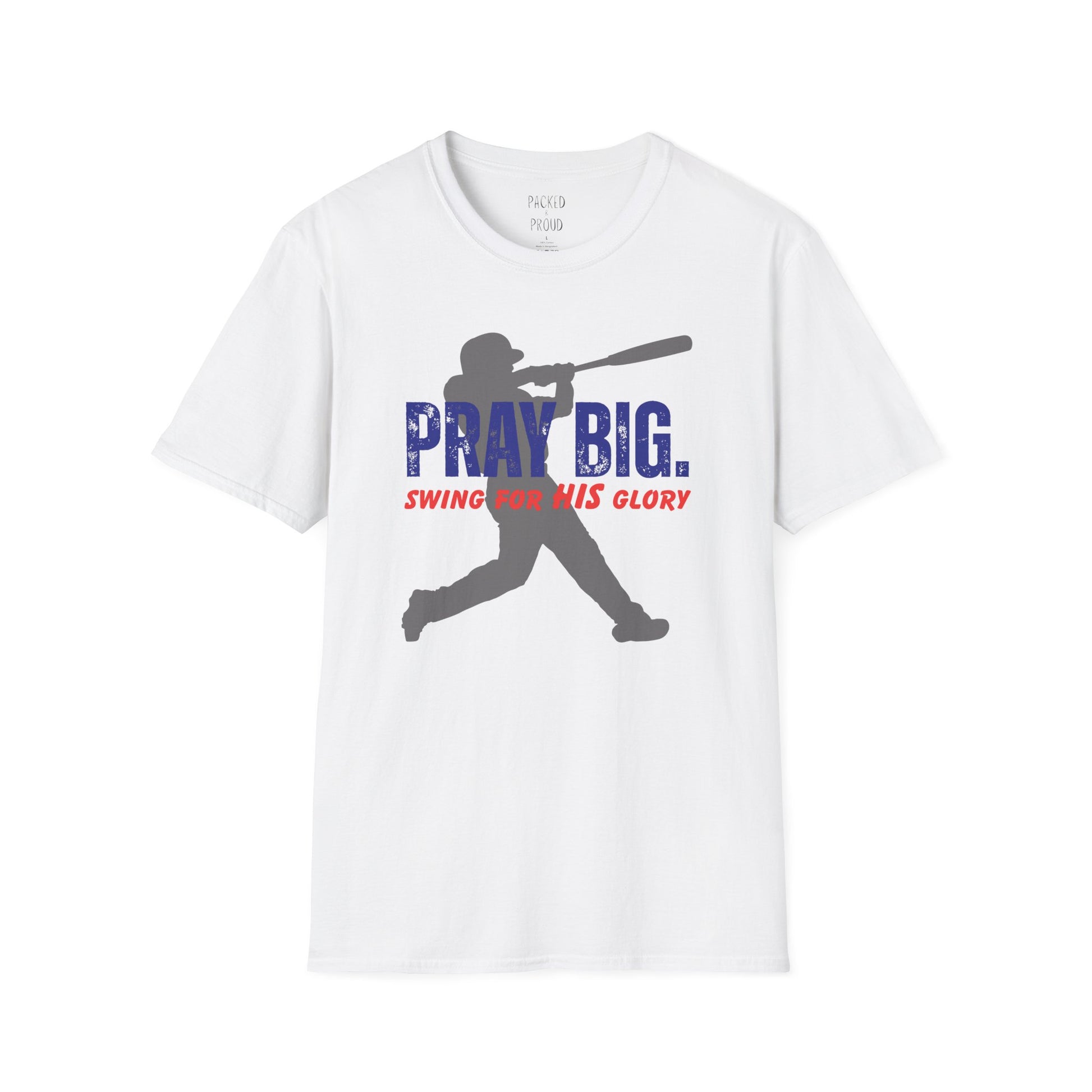 Step up to the plate in faith and style with our Pray Big. Swing for His Glory. t-shirt. Featuring a bold, vintage-inspired design of a batter mid-swing, this shirt blends the passion of baseball with the power of belief. Perfect for game days, tournaments, and cheering from the stands, it’s a reminder to give your all on and off the field—always for His glory. Printed on a soft, breathable tee, it’s as comfortable as it is meaningful.