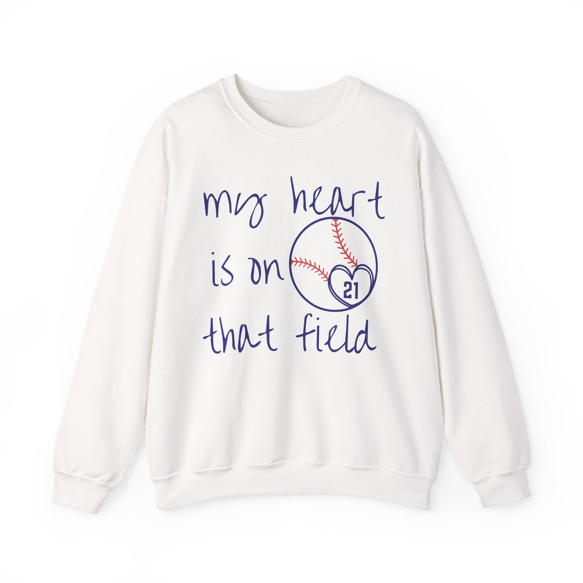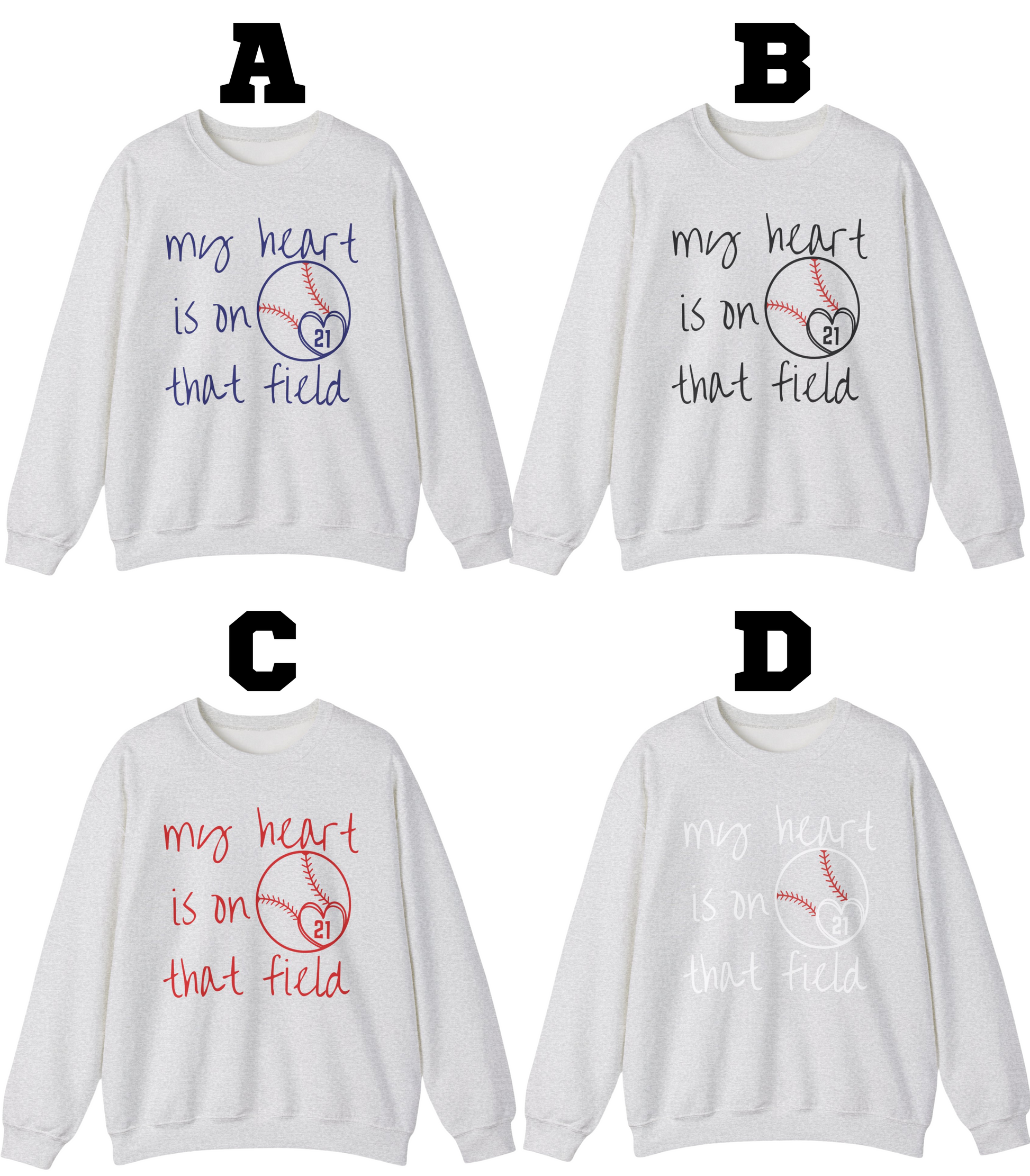 Let everyone know where your heart really is — on that field. This cozy crewneck sweatshirt features a hand-lettered design and a custom baseball heart with your player’s number. Perfect for game days, tournaments, and showing off your #1 fan status in style.